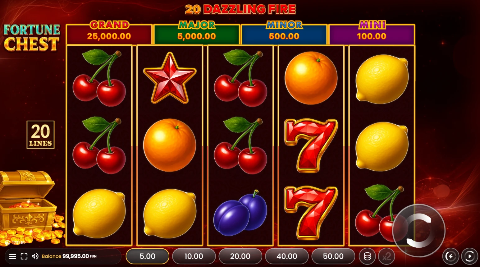 Get ready to ignite your senses with Dazzling Fire: Fortune Chest, Pascal Gaming’s electrifying classic slot! This 5x3 masterpiece bursts with 11 vibrant symbols, featuring the majestic Expanding Crown Wild that engulfs reels 2, 3, and 4, swapping for everything except the dazzling Star and Dollar Scatters! The real thrill? Landing up to 5 chest symbols to unleash the heart-pounding Fortune Chest Bonus! Watch the grid explode as chests lock tight, kicking off 3 respins—each new chest resets the count and fuels your shot at four epic jackpots: Mini, Minor, Major, or the life-altering Grand! Feeling bold? Double your loot with the thrilling Gamble Feature after any spin! With a sizzling 96% RTP and free bet options, this slot is your ticket to royal riches. Launching Pascal Gaming’s “Fortune Chest” category, it’s set to conquer and captivate slot fans worldwide! A Jackpot service adds extra fire for partners. Spin now and seize your dazzling fortune!